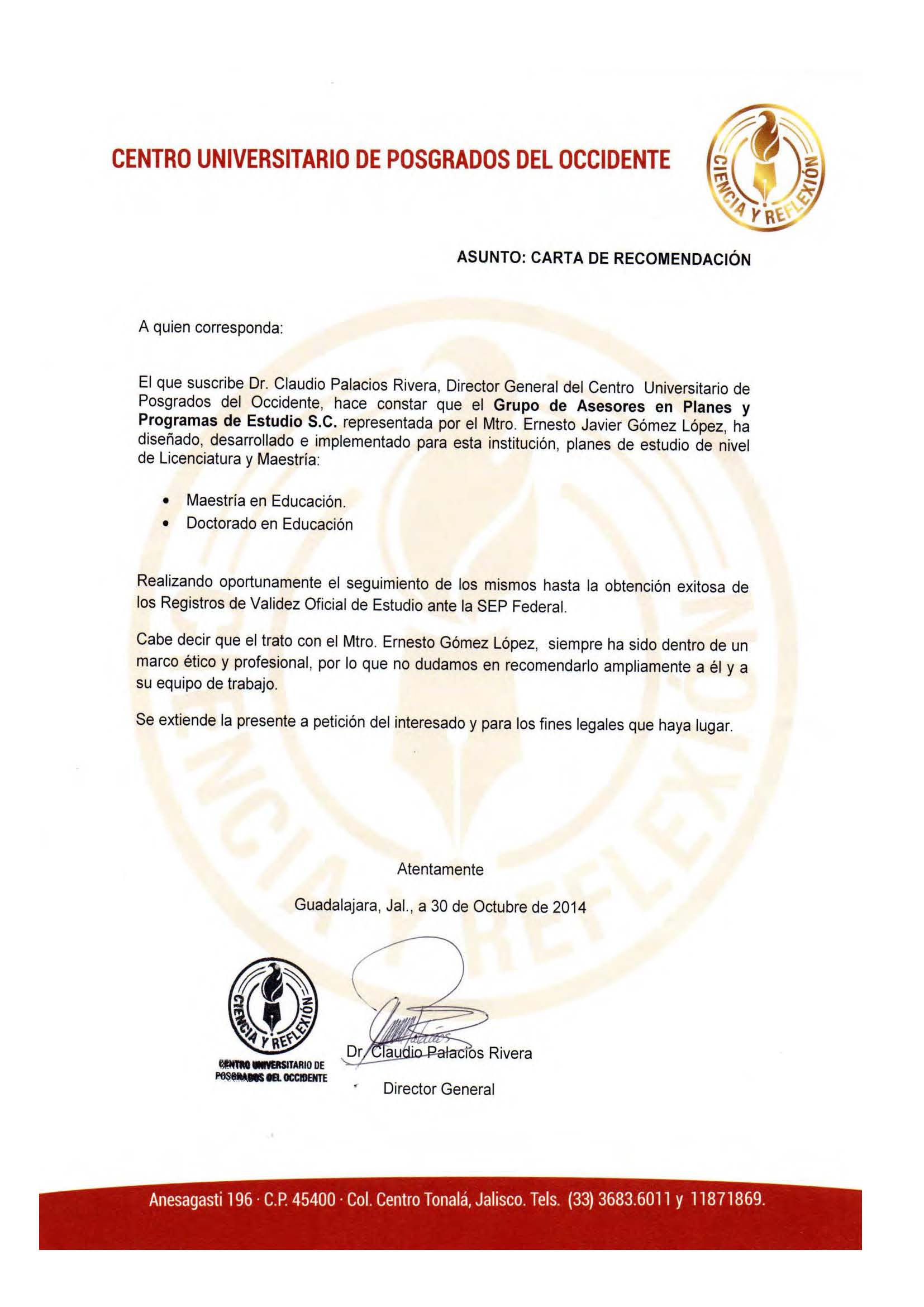 CENTRO UNIVERSITARIO DE POSGRADOS DEL OCCIDENTE