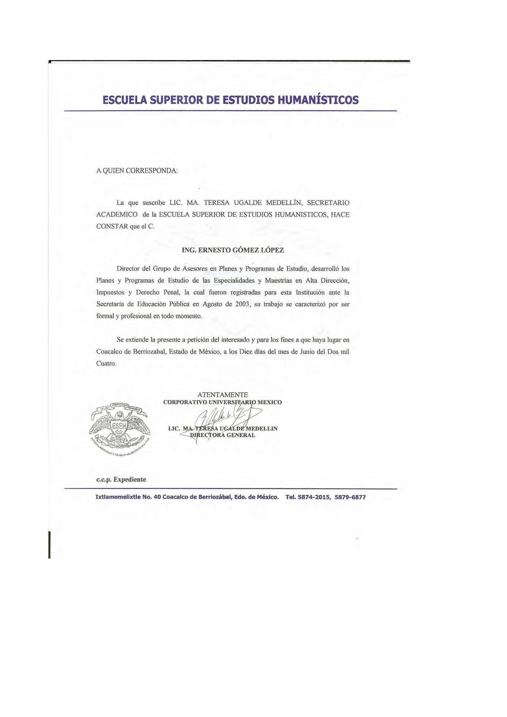 ESCUELA SUPERIOR DE ESTUDIOS HUMANISTICOS