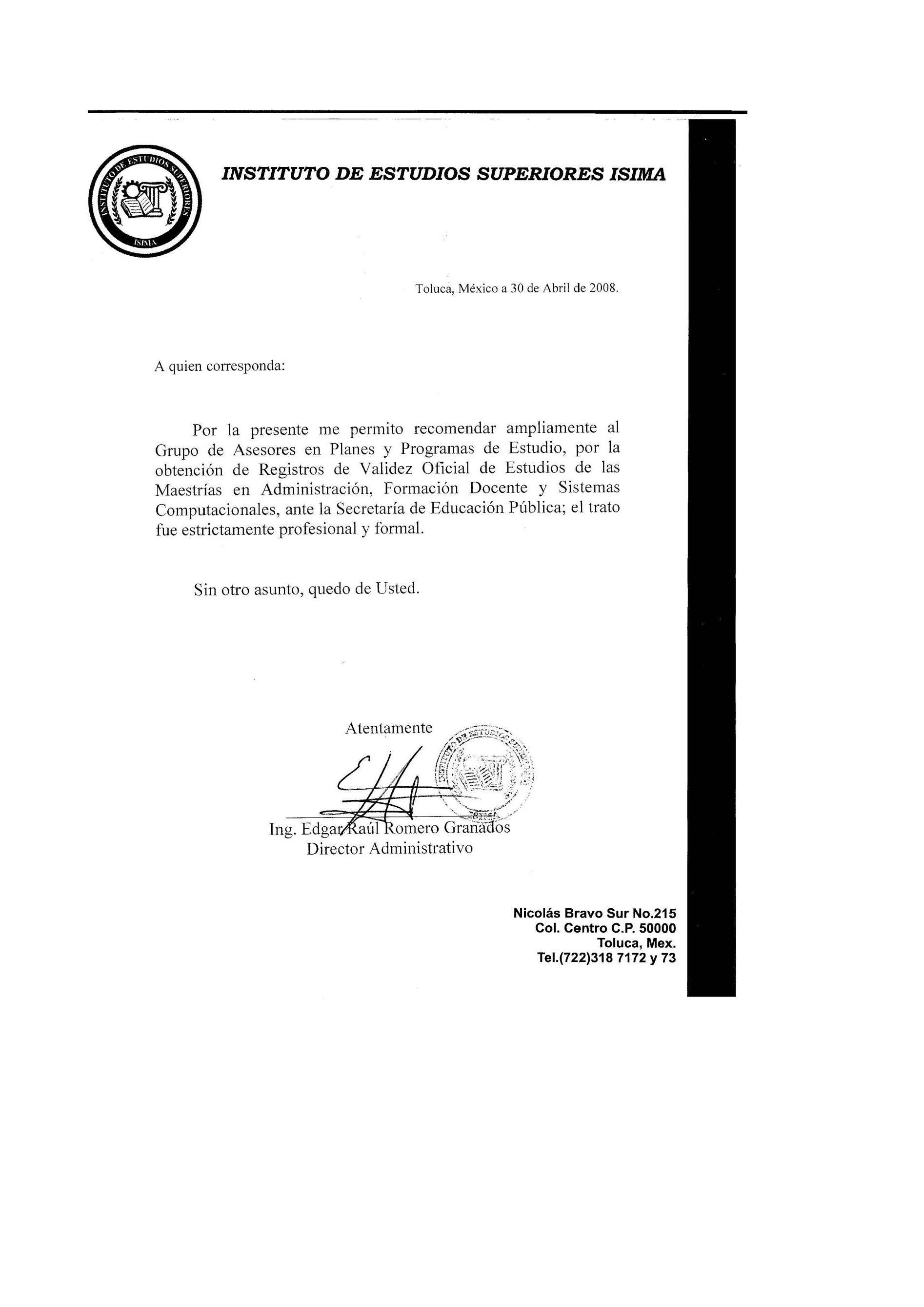 INSTITUTO DE ESTUDIOS SUPERIORES ISIMA
