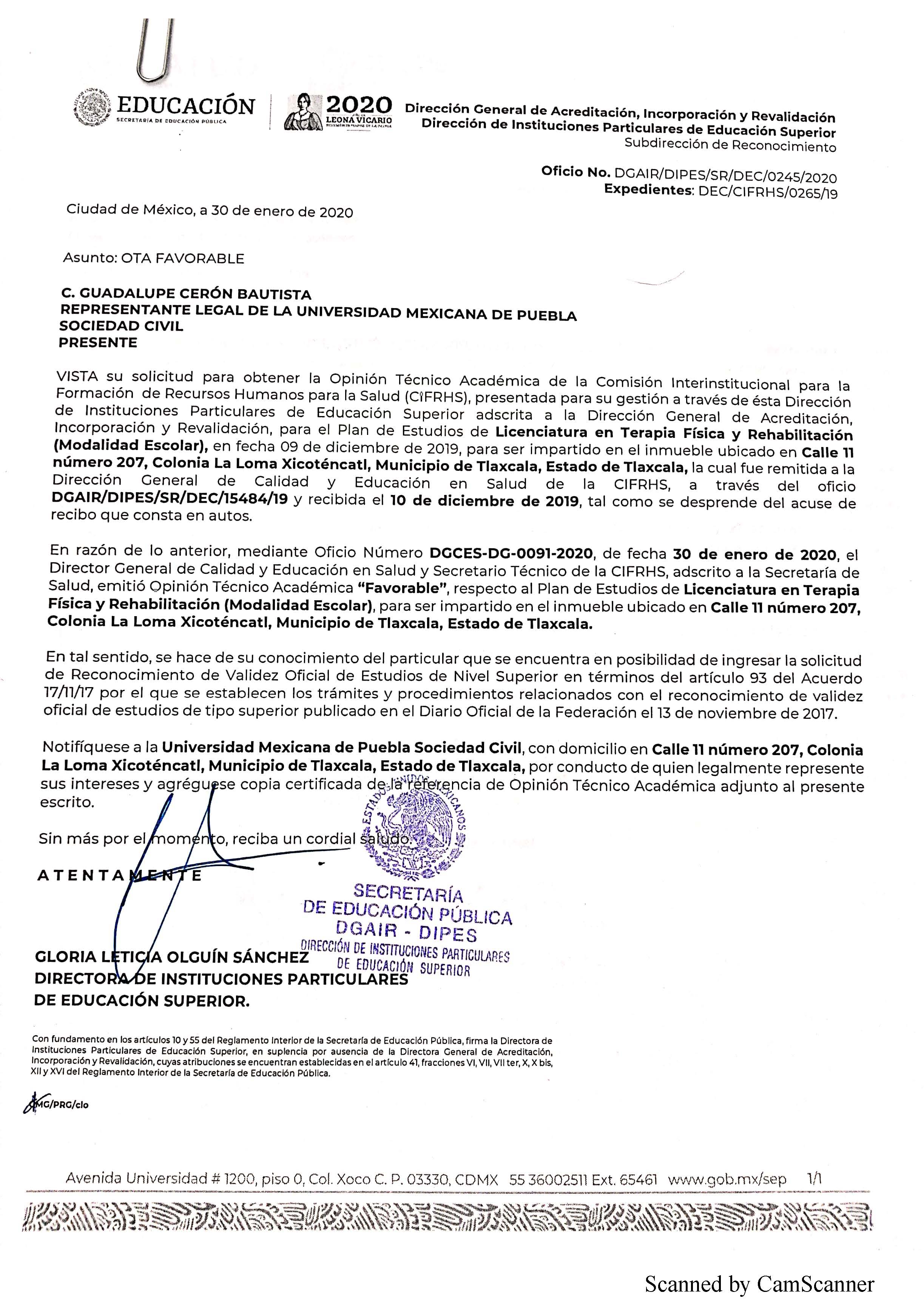 OTA TERAPIA FISICA Y REHABILITACIÓN UNIVERSIDAD MEXICANA DE PUEBLA